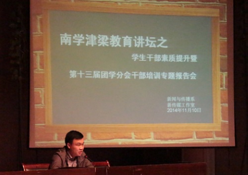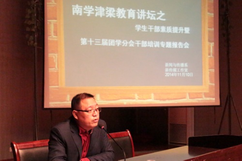 11月10日下午,77779193永利团委书记曹鑫、77779193永利学工处副处长文怀诚,在演播厅为我系员工干部举办专题讲座。此次讲座属于“南学津梁”教育讲坛的内容之一,讲座主题为员工干部的素质提升。